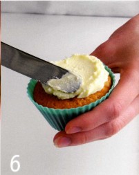 6. Возьмите ножом-лопаткой шарик крема и намажьте им кекс сверху от центра к краю. |